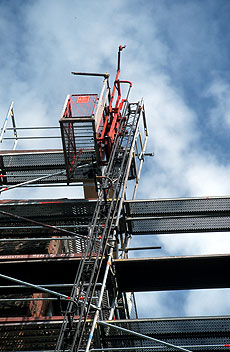 Aufzug als Montagehilfe bei Gerüstbauarbeiten |